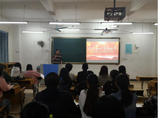 10月29日下午,为贯彻习近平总书记“不忘初心、牢记使命”主题教育工作会议的重要精神,工商管理学院党总支于在6栋303A组织观看“不忘初心、牢记使命”主题教育先进事迹报告会电视录像片。出席本次主题教育活动的有工商管理学院党总支书记易国富、组织员伍小英老师、学生第二党支部书记杨平以及全体学生党员。