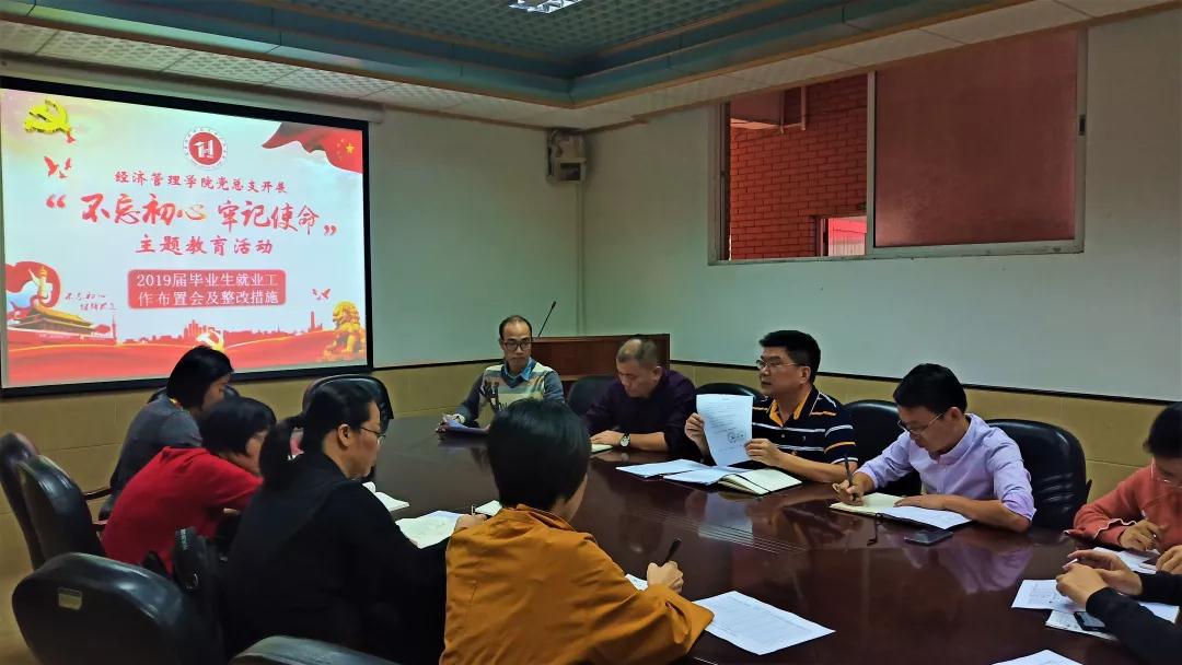 (通讯员 徐兴敏)10月30日下午,为深入贯彻落实“不忘初心、牢记使命”主题教育活动,扎实开展高校毕业生就业工作,2019届毕业生就业工作布置会及整改措施在7栋222会议室召开。党总支书记、副院长谭飞,副院长张志红,副院长陈天勇,办公室主任段妍君,各系主任以及2019届毕业班全体辅导员出席本次会议。