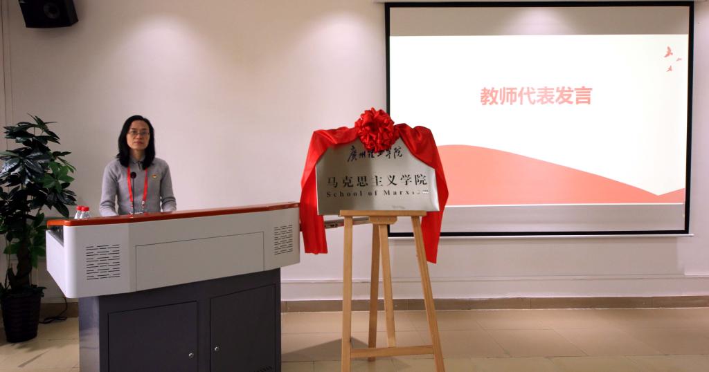 马克思主义学院教师文妙虹代表全体思政教师发言。她表示,思政教师定会在马言马、在马信马,真正落实立德树人这一根本任务,进一步深化教学改革,提高教学的吸引力和学生获得感,让马克思主义真理入脑入心,把马克思主义学院打造成为马克思主义理论教学、研究、宣传和人才培养的坚强阵地。