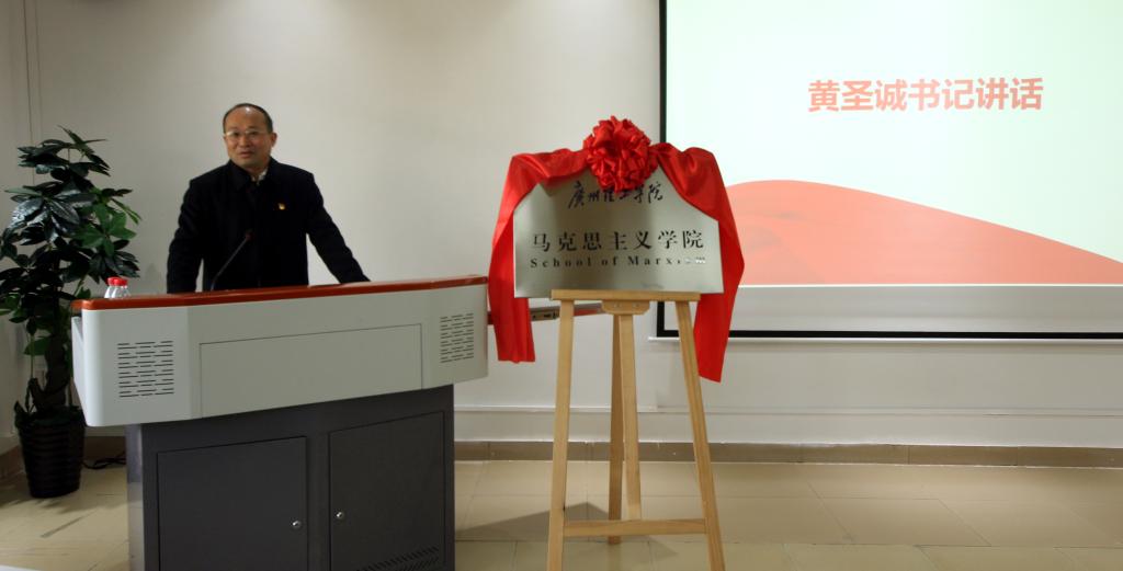 黄圣诚书记作了讲话。黄书记指出,成立马克思主义学院,是学校董事会、党委和行政深入贯彻全国教育大会精神,贯彻落实习近平总书记在全国高校思想政治工作会议和学校思想政治理论课教师代表座谈会上的重要讲话精神的重要举措。学校一直高度重视思想政治教育,董事会、学校领导多次召开专题会议研究马克思主义学院和思想政治理论课的建设。马克思主义学院成立,将有力地推进学校马克思主义理论学科建设、加强思想政治理论课的建设和学校思想政治工作水平。今年3月,学校出台了《思想政治理论课建设实施办法》,严格落实思想政治理论课的学时学分,开足开齐学校的思想政治理论课。加强思想政治理论课的师资队伍建设,按照1:350的要求配齐思政课教师队伍,努力建立一支专职为主,专兼职结合的思政课教师队伍。