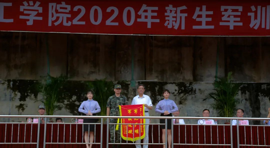 胡社军校长代表学校向军训承训部队赠送锦旗,表达了学校对承训部队的由衷感谢和崇高敬意。