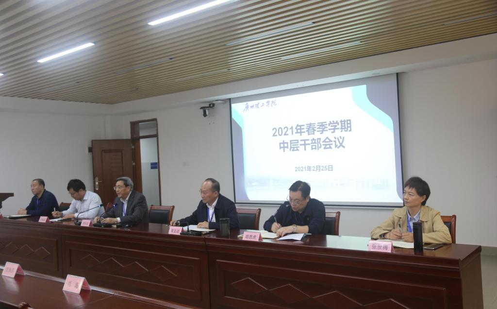 胡校长指出,2021年是新中国实施“十四五”规划、开启全面建设社会主义现代化国家新征程的第一年,是中国共产党成立100周年,是学校建立20周年,也是转设后新起点高质量发展之年。要高举习近平新时代中国特色社会主义思想伟大旗帜,坚持社会主义办学方向,全面贯彻党的教育方针,落实立德树人根本任务,走产教深度融合、校企协同育人的高素质应用型人才培养道路,服务粤港澳大湾区建设,紧跟科技创新和产业变革步伐,优化调整学科专业,全面深化激活二级学院办学活力改革,推进人才培养主体责任试点改革,为学校“十四五”时期新发展站好位、谋好篇、开好局、起好步,以优异成绩迎接中国共产党成立100周年。