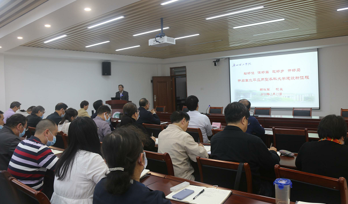胡校长解读了《人才培养主体责任制改革试点方案》,从改革背景、指导思想、基本原则、试点范围、试点程序、试点周期、目标任务、主要内容、办学自主权、支持措施、组织领导和保障措施等方面做了介绍和动员,鼓励各单位、各级领导干部,紧跟新时期科技创新、产业变革、社会发展步伐,迎接广东高等教育新发展挑战,积极实施人才培养主体责任制试点改革,建设一流学科专业,提升办学质量水平,全面激活办学活力,产教深度融合、校企协同育人,探索高素质应用型人才培养新模式,为粤港澳大湾区经济社会发展做出积极贡献。