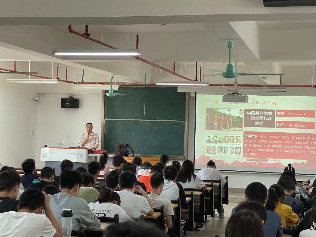 4月15日,黄圣诚书记以《奋斗百年路启航新征程——中国共产党为什么能》为题讲授第一课,引领大家回顾了中华民族的复兴与中国共产党的产生,从改革开放的伟大实践和新时代的新征程、中国共产党百年发展的成功经验与启示、新时代大学生的使命担当做了深刻的阐述。