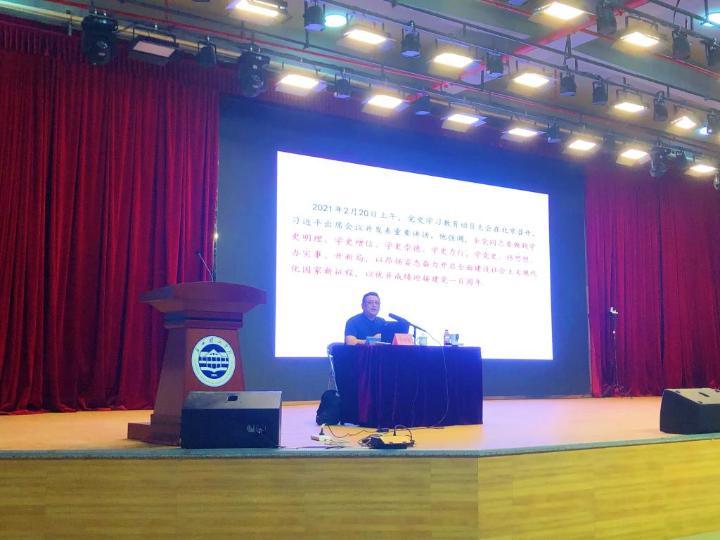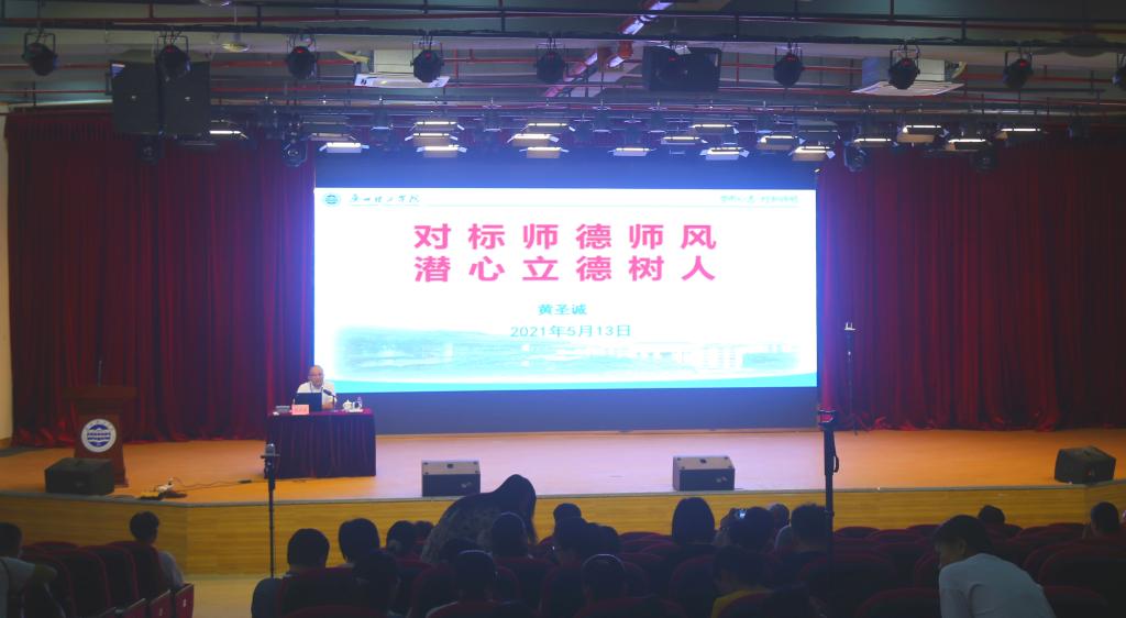 (唐然)5月13日上午,根据春季学期“三全育人”素质教育周安排,beat365在线唯一官网在新学术报告厅召开全校教职工大会,胡社军校长、黄圣诚书记出席并做师德师风建设辅导报告,广东技术师范大学李尚旗教授应邀为全校教职工做党史学习教育专题报告。大会线上线下全程全校直播。
