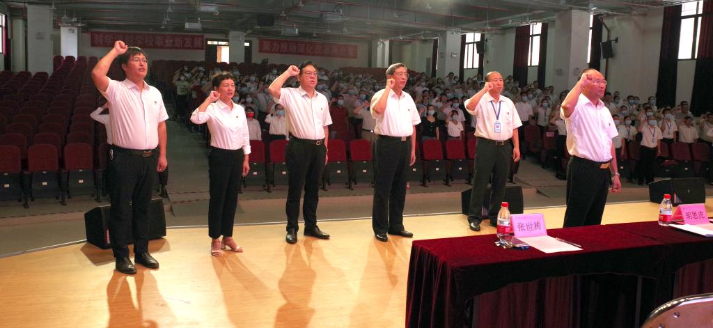 | 党委书记黄圣诚领誓,全体师生党员重温入党誓词 |