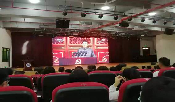 (通讯员:张威威)7月1日上午,建筑工程学院教工一支部同志在工程中心学术报告厅,全程收看了庆祝中国共产党成立100周年大会,认真聆听学习习近平总书记的重要讲话精神。观看盛况后,学校党委书记黄圣诚要求广大党员认真学习习近平总书记重要讲话精神并带领全校现场观礼党员同志重温入党誓词。