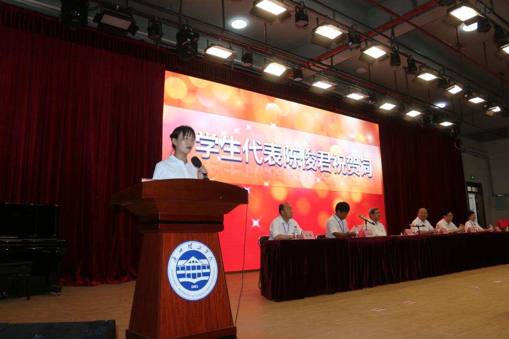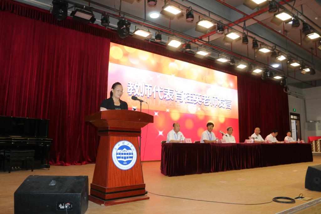 学生代表、退役复学学生陈俊君发言,为全校教师送上崇高礼赞,艺术学院师生为广大教师献唱《感恩的心》。教师卓越代表肖桂英分享了从教心得和带队参赛感受,先进集体代表、工商管理学院李培祥教授分享学习型、创新型、服务型团队建设心得。