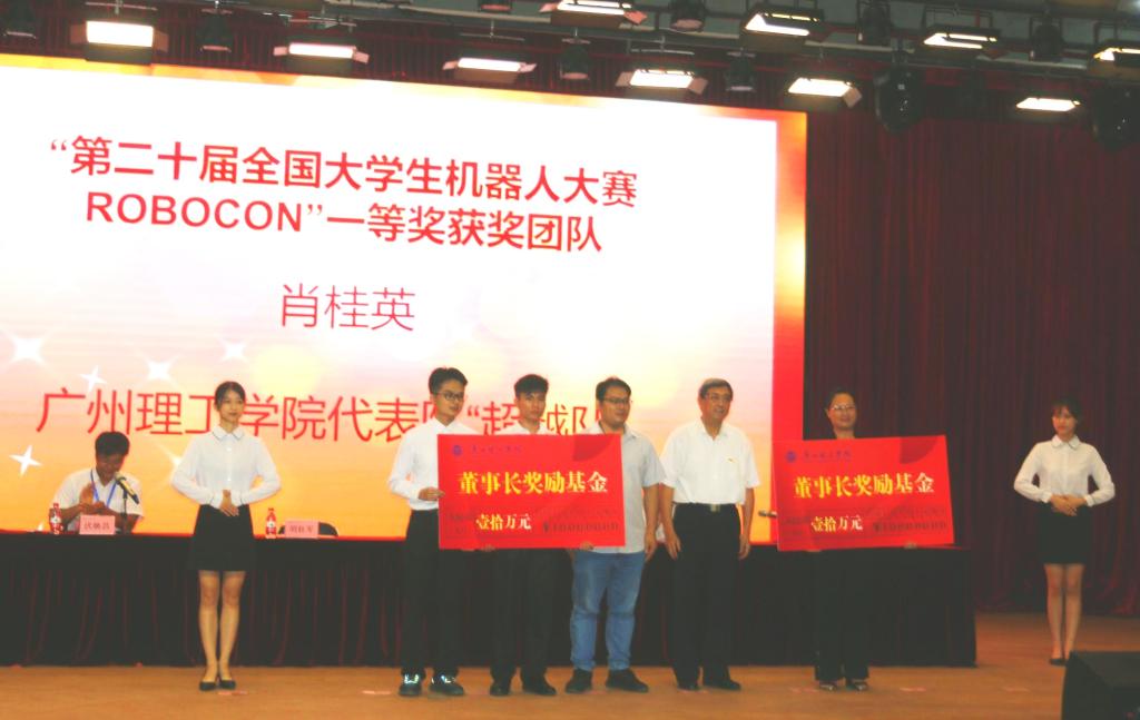 会上,第二十届全国大学生机器人大赛ROBOCON一等奖获奖团队、黄爱青等广东省南粤优秀教师、曹知博等学校首届教学名师和年度优秀教师、优秀教育工作者、教学标兵、科研标兵、先进集体受到表彰。全国优秀指导教师、寒暑假陪着学生、周末辅导学生、不畏艰难想尽办法创造条件、带领学生站上全国最高领奖台的肖桂英老师及其师生团队,分别获得董事长奖励基金10万元。