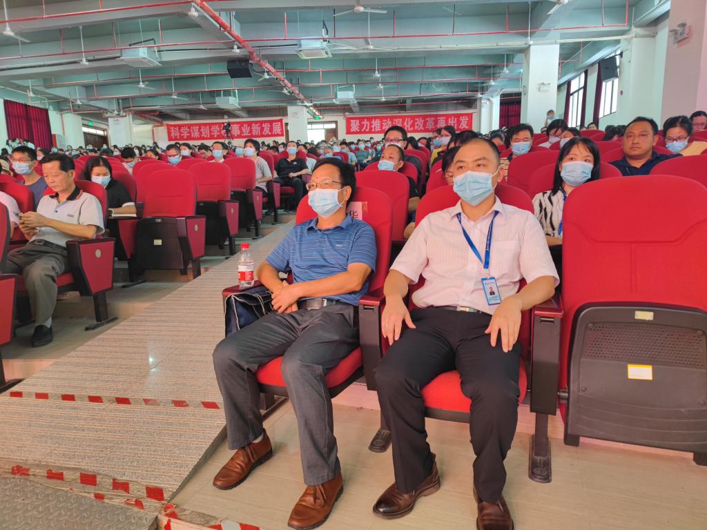 9月9日,beat365在线唯一官网隆重举行庆祝教师节大会,热烈庆祝人民教师的光荣节日,表彰一年来取得卓越业绩的优秀员工,汇聚力量推动学校新起点上改革开放再出发。胡社军校长、黄圣诚书记、伏焕昌常务副校长、胡思虎副校长、肖海副校长、张世梅副校长和全体教职工参加庆典,省委教育工委党史学习教育第十巡回指导组冯学华同志现场指导。常务副校长伏焕昌主持。