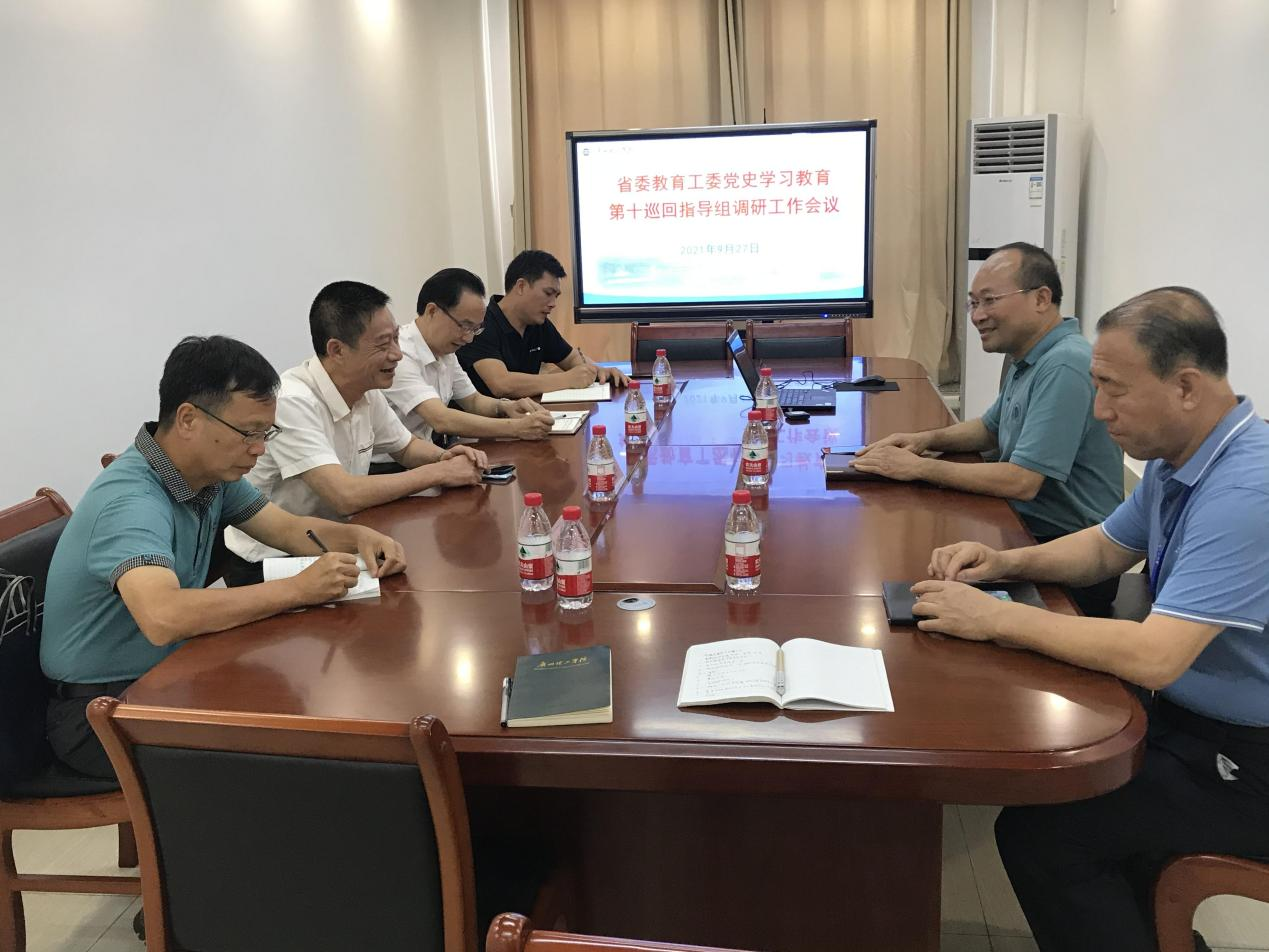 (初冠仪)9月27日,省委教育工委党史学习教育第十巡回指导组组长吴愈中、副组长林广文、组员冯学华和吴锦源等同志到学校,调研指导党史学习教育工作。党委书记黄圣诚,党委副书记、副校长肖海,党办主任杨志亮等参加调研会。