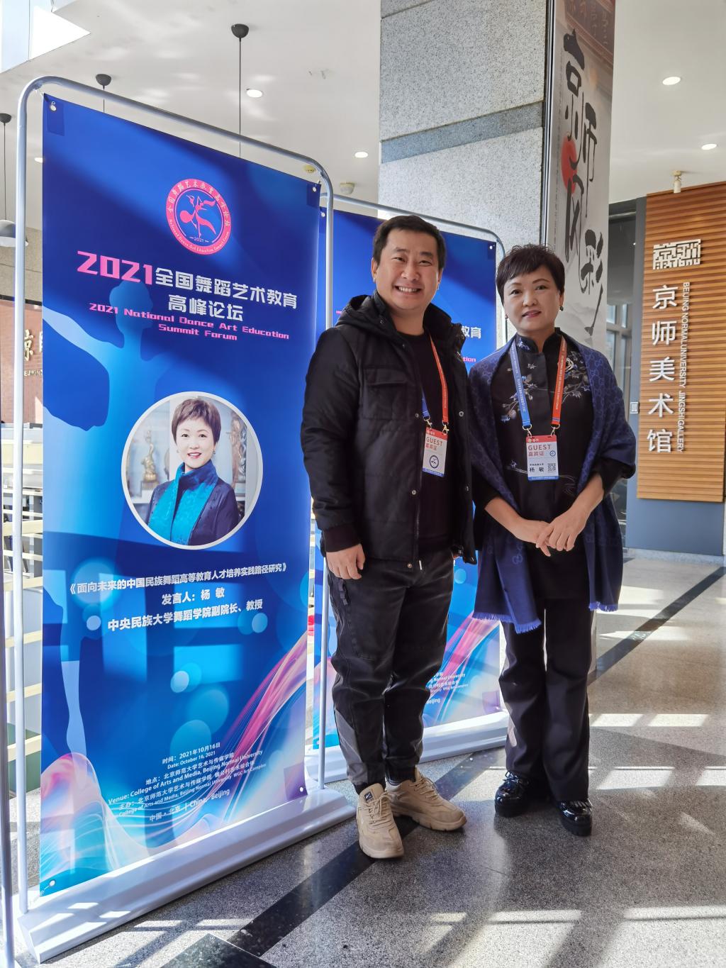 王恺副教授与中央民族大学舞蹈学院副院长杨敏教授合影