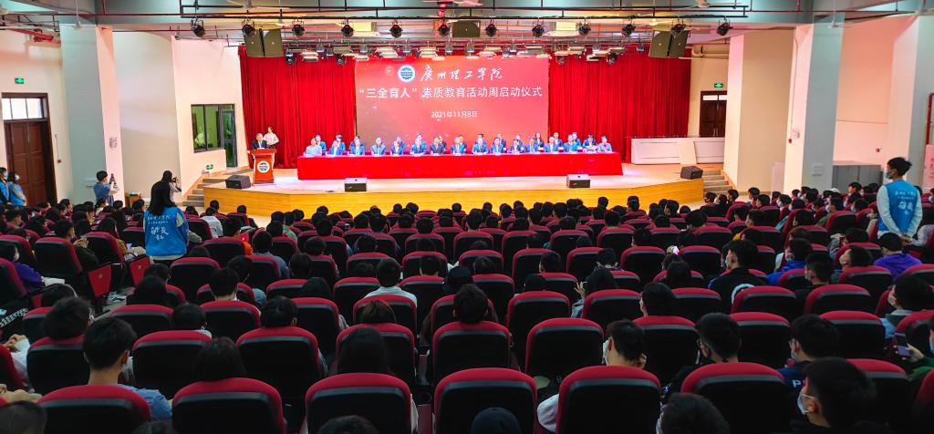 黄圣诚书记致开幕词并指出,学校以“三全育人教育周”为载体,全面推进全员育人、全过程育人、全方位育人,精心打造“三全育人”工作品牌,将每学期第11 周设立为三全育人素质教育周,学校和二级学院层面相结合,教师、学生一体化活动相结合,学术专业活动和素质教育相结合,校内校外资源利用相结合,搭建三全育人“立交桥”,全面推进学生思想品德、文化涵养、科技创新、体育锻炼、劳动养成、自我管理等全面发展,培养德智体美劳全面发展的社会主义建设者和接班人。