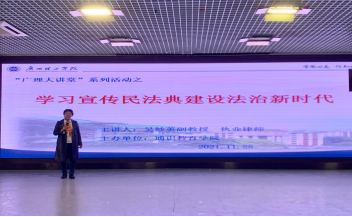 2021年11月25日,马克思主义学院(通识教育学院)副教授、执业律师吴妙英,在beat3652号报告大厅为480名同学做了“学习宣传民法典建设法治新时代”的专题法律讲座。吴老师的讲座分为三个部分。