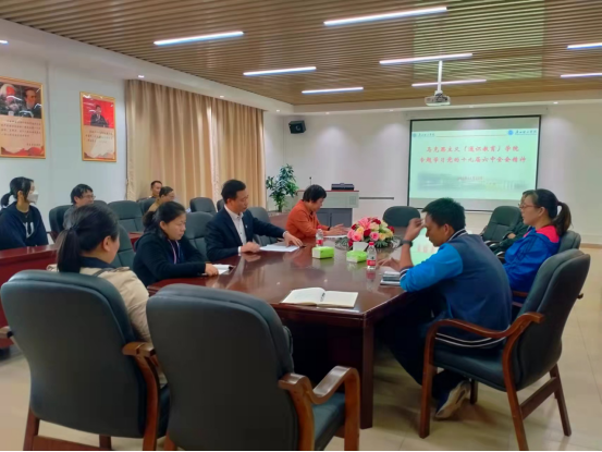 11月25日下午,马克思主义(通识教育)学院在7栋503会议室召开全院教职工会议,集中学习贯彻党的十九届六中全会精神。马克思主义(通识教育)学院党总支书记邓楠同志作学习辅导报告,袁毓玲院长主持会议,学院全体教师参加学习。