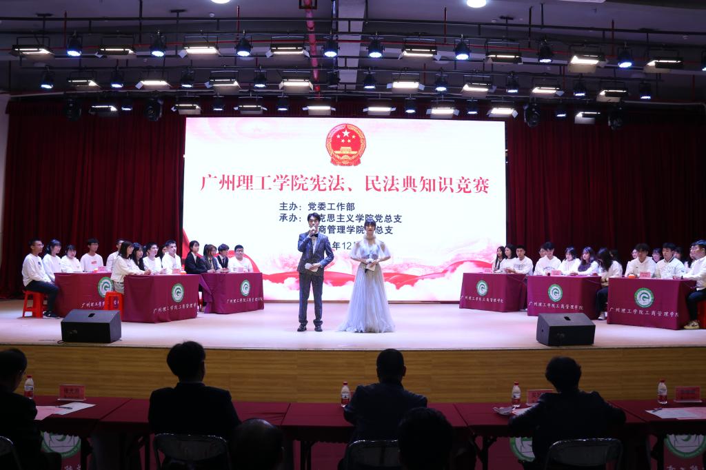 12月9日,由马克思主义学院与工商管理学院党总支共同承办的2021年宪法、民法典知识竞赛在1号报告大厅开赛,党委副书记、副校长肖海和约600名学生到场观摩,师生以赛促学,在校园内形成尊法学法守法用法的良好氛围。马克思主义学院教研室主任吴妙英、党委工作部部长杨志亮、新闻中心主任黄菲青、法律教研室律师张光庶、学校办公室机要秘书牛华岩应邀担任评委。