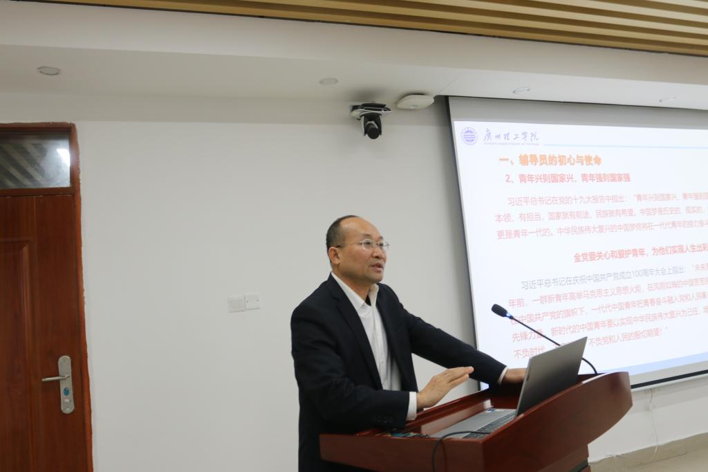 黄圣诚书记围绕《做学生成长成才的引路人》主题,从三个方面做了辅导讲话。一是要保持初心使命。高校辅导员角色定位要清晰,学生思想政治工作目的要明确,以落实立德树人为根本任务,遵循思想政治教育规律、教书育人规律、学生成长规律,将思想政治教育贯穿学生学习、生活各方面。二是要向身边的榜样学习。黄书记介绍了全国优秀辅导员陈小花以及beat365全国民办高校优秀辅导员李昉、林妙芳、唐海春等四位老师的先进事迹。黄书记强调,辅导员要用心做学生成长成才的引路人,要增强“四个意识”,坚定“四个自信”,做到“两个维护”“六个要”,引导学生听党话跟党走,做马克思主义青年观的践行者,做习近平新时代中国特色社会主义思想的传播者,做实现共产主义的信仰者。