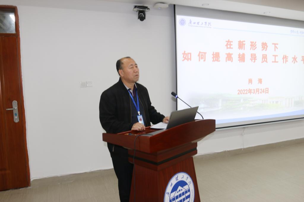 肖海副书记以《在新形势下如何提高辅导员工作水平》为题做了辅导报告,明确了辅导员工作的基本目标、基本理念、基本思路、基本原则、基本方法,肖副书记强调,辅导员是开展大学生思想政治教育的骨干力量,是高等学校学生日常思想政治教育和管理工作的组织者、实施者、指导者,应当努力成为学生成长成才的人生导师和健康生活的知心朋友。