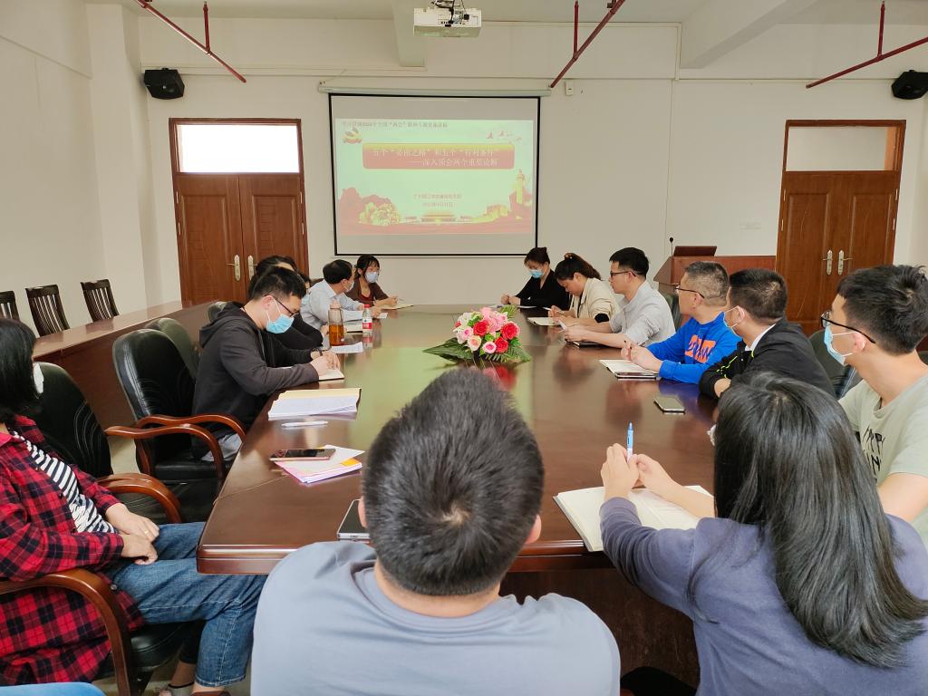 (袁洁贞)3月31日下午,直属党支部召开2022年“两会”精神专题学习研讨会,党支部书记陈英征以《五个“必由之路”和五个“有利条件”》为主题领学“两会”精神,支部全体成员积极参与学习研讨。