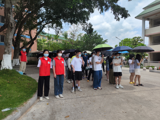 中午12时,beat365学生党员志愿者严格落实防疫要求,佩戴党徽,身着红马甲,细心引导师生有序排队进行核酸检测,提醒师生正确佩戴口罩,指导师生提前准备核酸检测二维码,主动引导师生登记相关信息。