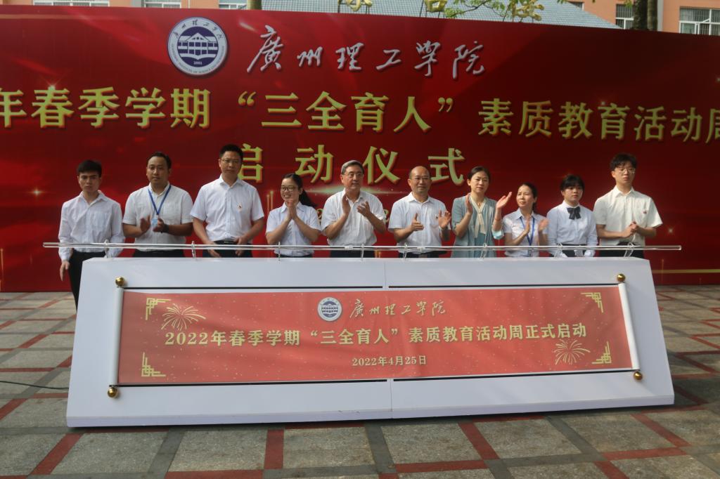 全体董、党、政领导出席本季三全育人素质教育活动周开幕式,党委书记黄圣诚、校长胡社军、优秀师生代表共同开启启动杆。黄圣诚在致辞中说:“通过活动周和科技学术季,强化青年师生创新创造创业精神,在实践中巩固提高、有所作为,升华爱党爱国情怀,激发爱校荣校担当,培养成为担当民族复兴大任的时代新人。”