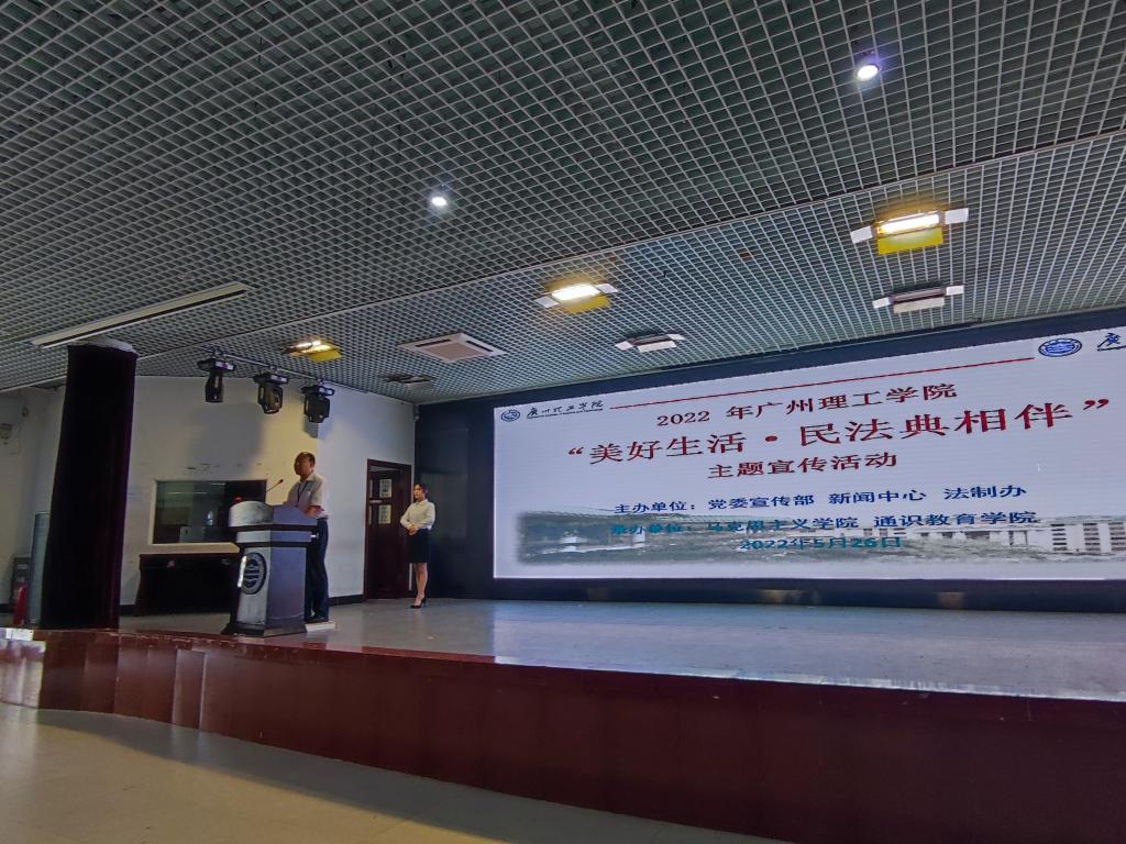 5月26日,在《中华人民共和国民法典》颁布两周年纪念日即将到来之际,由党委主办,党委工作部、宣传部、新闻中心、法制办协同,马克思主义学院承办的2022年“美好生活·民法典相伴”在二号报告厅启动。党委副书记、副校长肖海,新闻中心、纪委办、法制办、马克思主义学院负责同志和师生代表近500人参加了启动仪式。法制办主任、马院党总支书记邓楠主持。