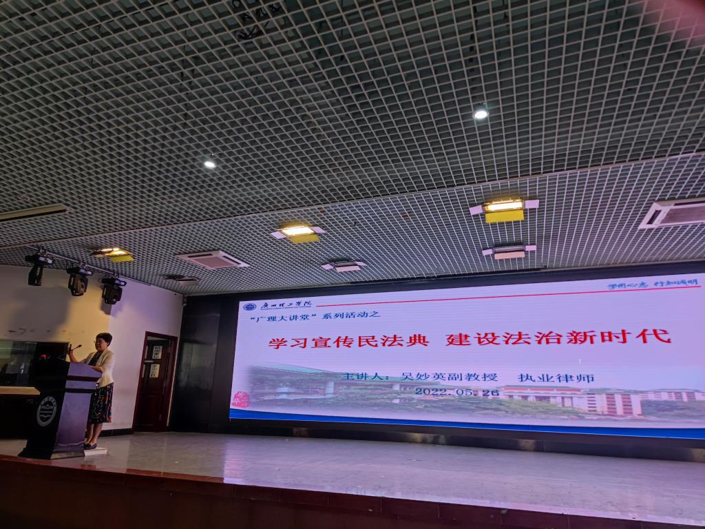 马克思主义学院教授、执业律师吴妙英做了《学习宣传民法典,建设法治新时代》的专题讲座。