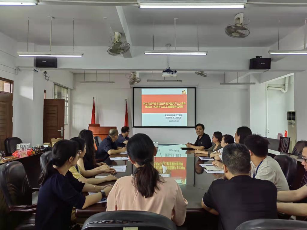 5月19日下午,在8栋305室,智能制造与电气工程学院教工党支部组织全体党员学习庆祝中国共产主义青年团成立100周年大会精神。
