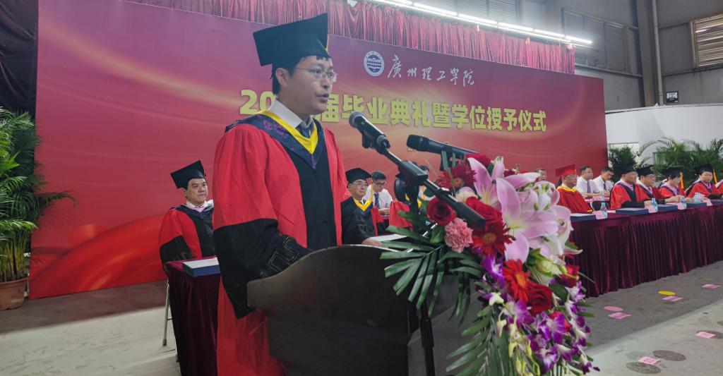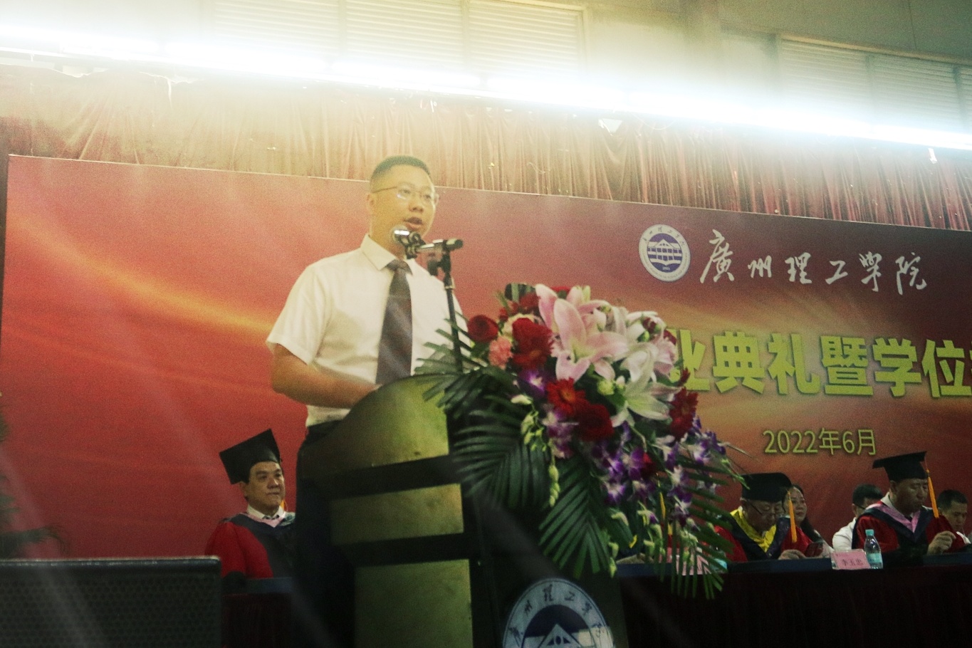 优秀教师王煜林发言,勉励毕业校友,如果有梦想,坚持它,祝毕业校友前程似锦,未来可期!毕业生代表、广东省优秀共青团员、广东省防疫先进个人谭仟发言,祝愿母校硕果累累,再创辉煌;祝福师长身体健康,桃李芬芳;祝福同窗乘风破浪,前程似锦。