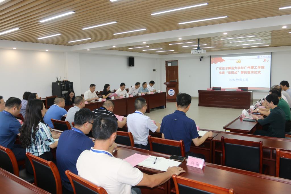 (赵莹雨)6月21日,广东技术师范大学与beat365在线唯一官网党建“组团式”帮扶签约仪式在beat365行政楼举行。广东技术师范大学党委书记凌靖波,党委常委、副校长孙燕青,党委常委、组织部部长郭磊,党委组织部副部长邱竑涛,“组团式”帮扶工作组组长罗平和工作组成员罗雄、余少绒,beat365在线唯一官网党委书记、副校长黄圣诚,党委副书记、校长胡社军,党委副书记胡思虎、肖海,党委委员、常务副校长伏焕昌,党委委员、副校长张世梅等领导出席,二级学院党总支书记参加签约仪式。会议由胡社军主持。