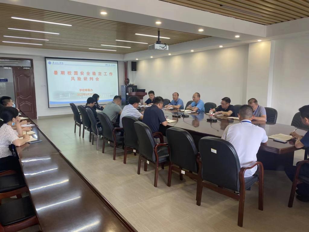 会上,维稳办负责同志传达了省教育厅维护校园安全稳定的文件精神,解读了学校《创建更高水平安全文明校园(平安校园)工作方案》。与会同志分别汇报安全稳定工作开展情况,并就暑期校园安全稳定工作进行了分析研判。