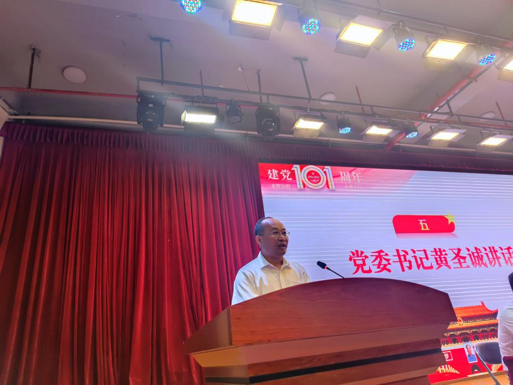 党委书记黄圣诚发表了讲话,代表党委和董、党、政班子,向全校师生党员致以节日的问候,向受表彰的集体和个人表示热烈的祝贺,向为学校高质量发展付出辛勤劳动的师生员工表示崇高的敬意。