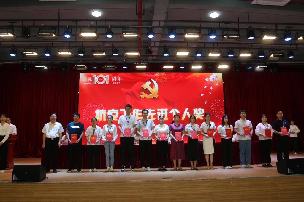 (黄菲青)7月1日,党的生日。全校教职工和留校党员学生齐聚在1号学术报告厅,共同庆祝伟大的中国共产党成立101周年,表彰为学校发展做出积极贡献的先进基层党组织、优秀共产党员、优秀党务工作者,重温党的光辉历程,传承党的优良传统,讴歌党的丰功伟绩,激励各级党组织和广大党员不忘初心、牢记使命,立德树人、砥砺奋进,努力推动学校事业高质量发展。