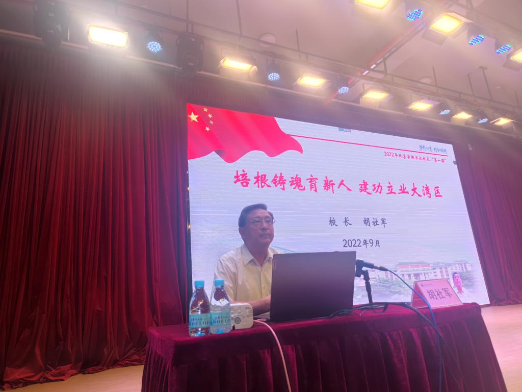 胡社军讲授了题为《培根铸魂育新人,建功立业大湾区》的专题课,着重阐述了学校的根本任务是为党育人为国育才,勉励青年学生牢记党的教诲,立志民族复兴,努力成长为堪当民族复兴重任的时代新人;着重阐述了中国现代大学的使命任务,强调了学校立足广东,面向华南,服务粤港澳大湾区,致力培养知行合一、信息化素养高、实践能力创新精神强、具有国际视野的高素质应用型人才的办学定位。在“我的大学人生从beat365在线唯一官网起航”篇章,胡校长介绍了学校20多年催人奋进的奋斗历程、办学定位、成果特色、资源平台、三大课堂、社会实践、就业指导服务等校情校史,介绍了专家治教、民主管理、学业预警、闭环管理等教育管理服务特色,引导青年师生积极参与应用型人才培养改革,积极参与创新创业实践,厚植爱校荣校兴校情怀。