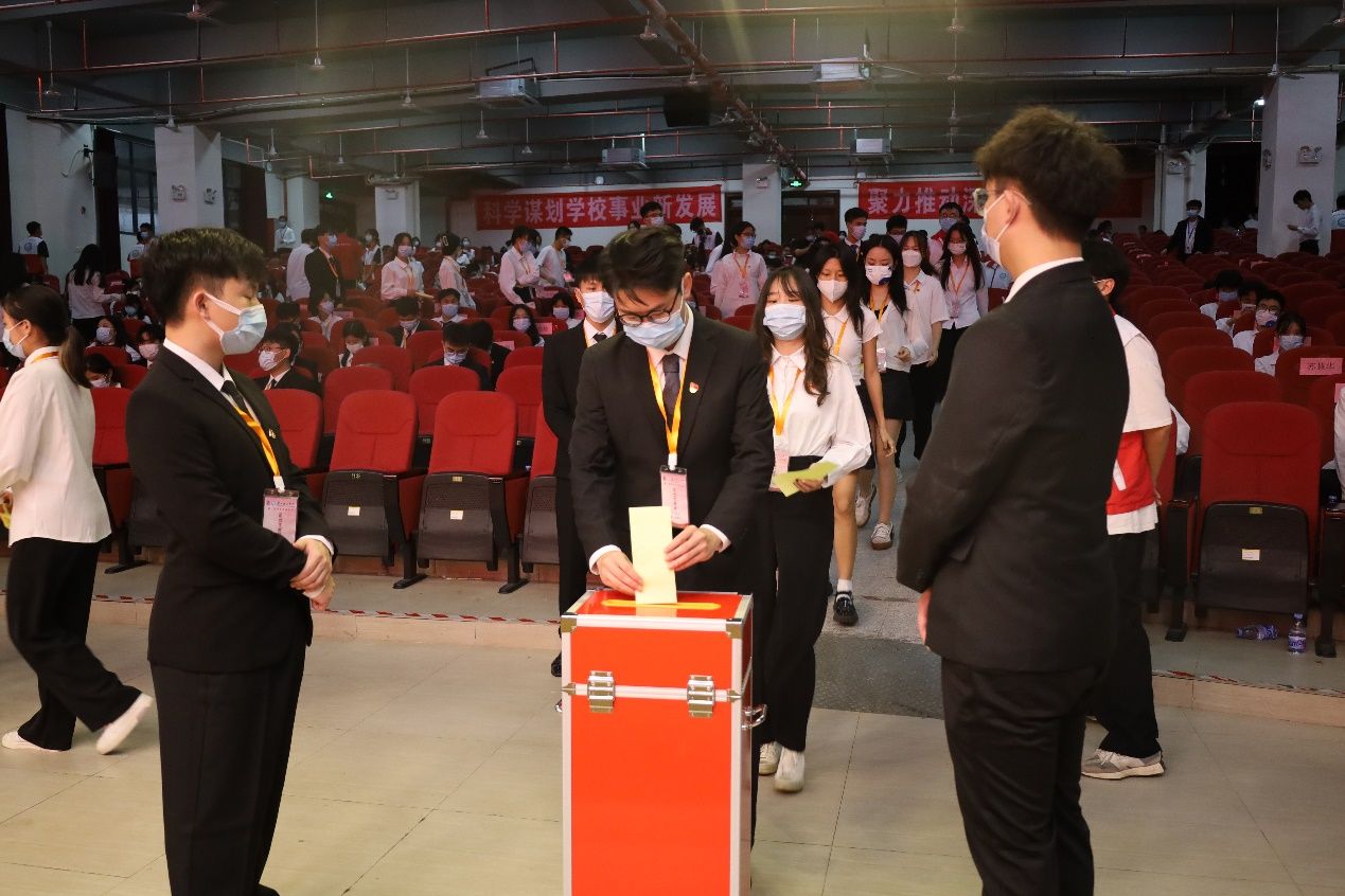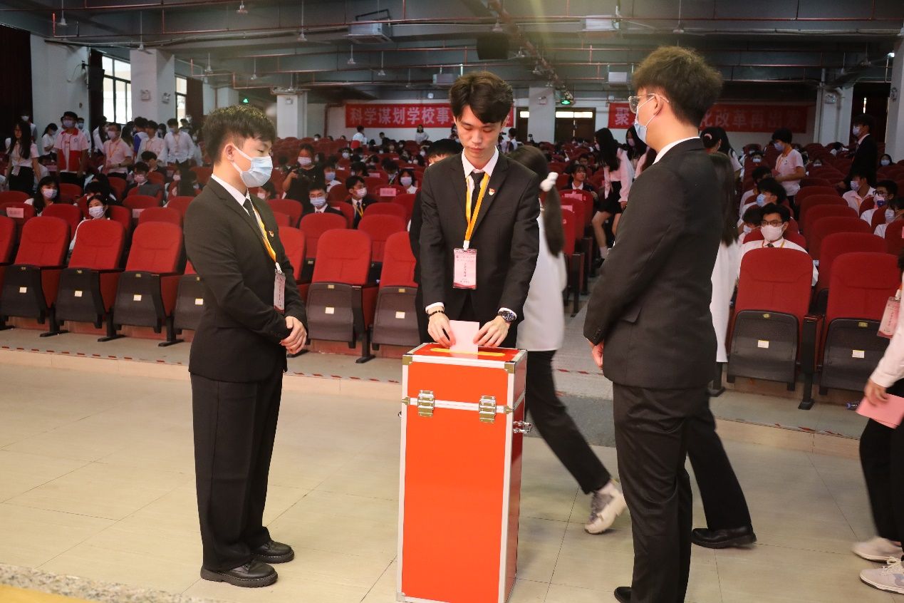大会选举产生了新一届学生会主席团成员,他们分别是刘家健、黄海媚、卢婉怡。
