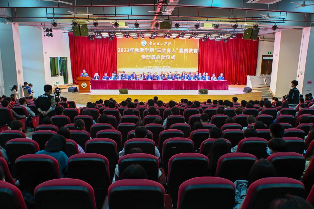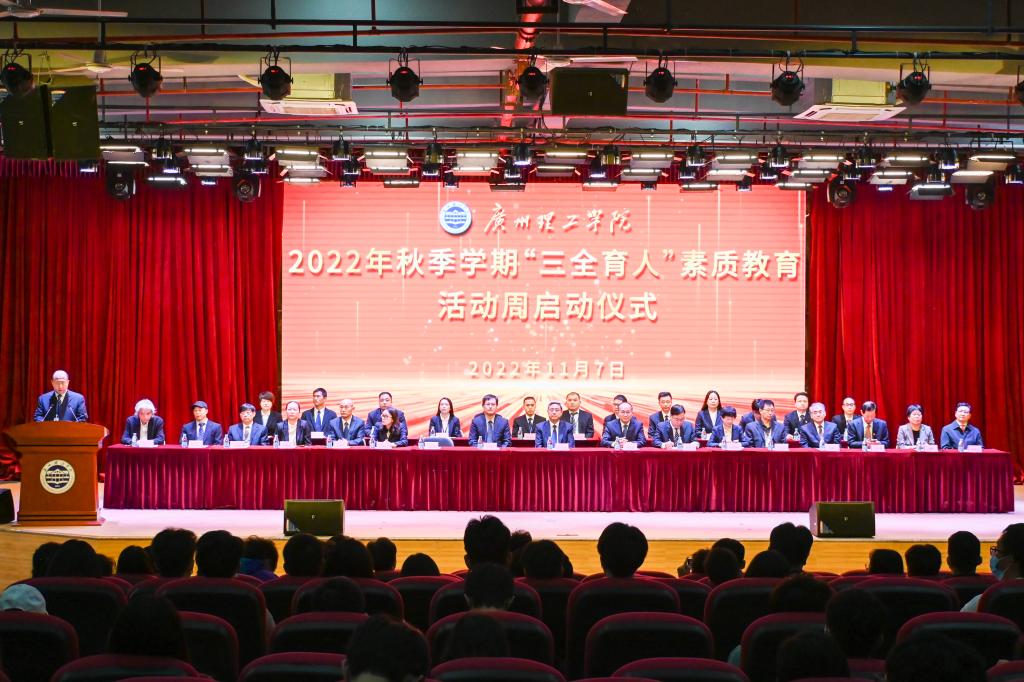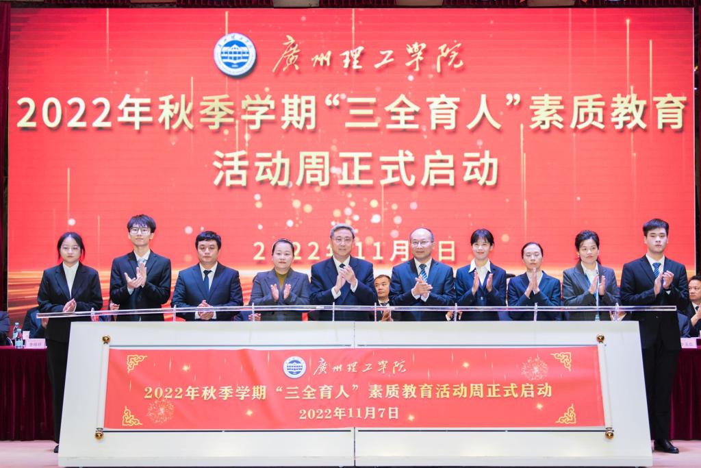 胡社军校长、黄圣诚书记和师生代表共同启动“三全育人”素质教育周活动。