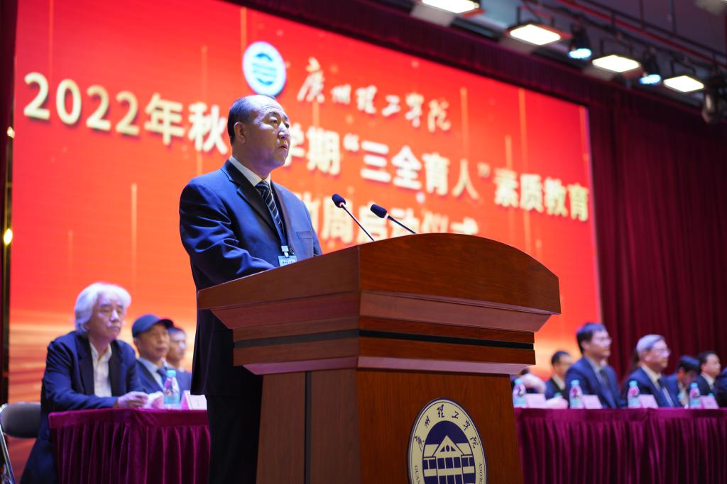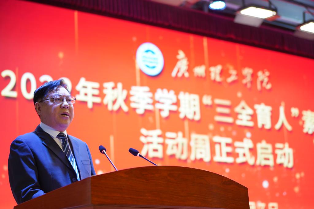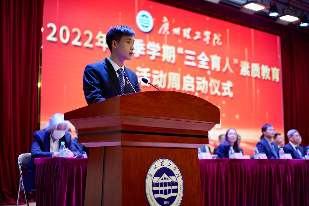党委书记黄圣诚致开幕词。他指出,三全育人素质教育活动周是beat365精心打造的三全育人教育品牌。学校坚持以习近平新时代中国特色社会主义思想为指导,全面贯彻党的教育方针,落实立德树人根本任务,为党育人、为国育才,构建全员、全程、全方位育人新格局,推进学生在思想品德、文化涵育、科技创新、体育锻炼、劳动养成、自我管理等方面得到全面锻炼,促进德智体美劳全面发展。希望同学们传承民族经典,弘扬创新精神,坚定不移听党话、跟党走,怀抱梦想又脚踏实地,敢想敢为又善作善成,立志做有理想、敢担当、能吃苦、肯奋斗的新时代好青年;希望老师们全程参与三全育人周活动,悉心指导,做学生成长成才的引路人。