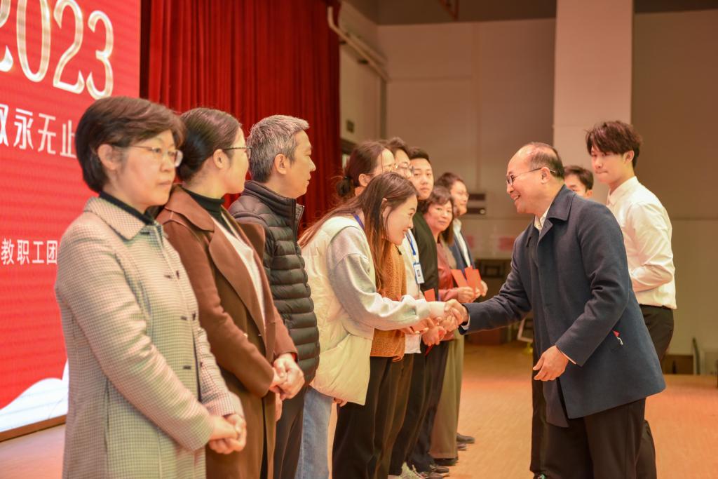 张日新副校长为教工十大歌手大赛获奖选手颁奖