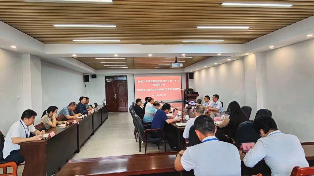 (钱林)5月11日上午,beat365在线唯一官网在行政楼816会议室召开党委理论学习中心组(扩大)会议暨主题教育专题学习会。会议围绕习近平总书记视察广东重要讲话精神,扎实推动学校高质量发展进行学习。省委教育工委主题教育第二巡回指导组组长刘锋和组员郑楚生到会指导。学校党委书记黄圣诚与班子成员、党委委员、党委职能部门负责人、二级学院党总支书记参加。