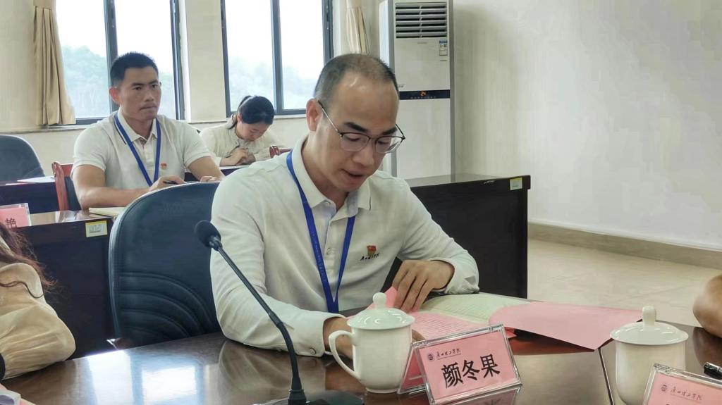 智能制造与电气工程学院党总支书记吕在艳以《以高质量教育支撑高质量发展》为题,在发言中紧紧围绕习近平总书记视察广东重要讲话、重要指示精神,结合学院深入学习贯彻落实党的二十大精神,坚持立德树人根本任务,以学校人才培养主题责任制改革为契机,从学院思想引领、制度建设、文化活动、教学改革、就业工作等方面,以高质量党建融入学院建设全过程、学生成长各方面取得的成果成效作了介绍,并就接下来学院如何开展主题教育工作作了讲解。