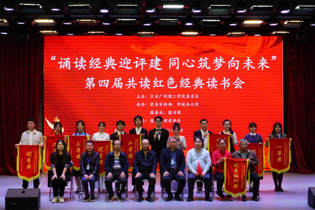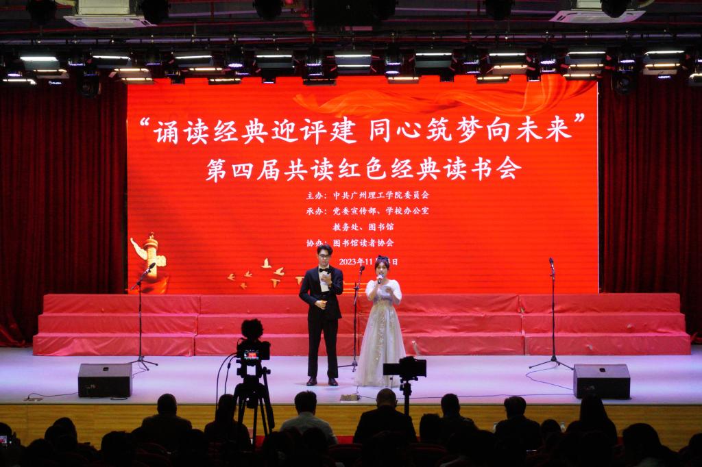 在随后进行的红色经典读书会上,十支参赛代表队的师生依次上台诵读了红色经典《百年芳华,筑梦前行》《每当我走过天安门广场》《美丽中国》《月光下的中国》《我骄傲,我是中国人》《美好赞歌唱给您》《我爱你啊,中国》《祖国,我亲爱的祖国》《扶贫路上》,大家用饱满的情绪深情演绎着每个经典作品,现场气氛热烈,掌声不断,感染着在座的每一位师生,充分展现了广州理工人昂扬向上、拼搏进取的精神风貌。