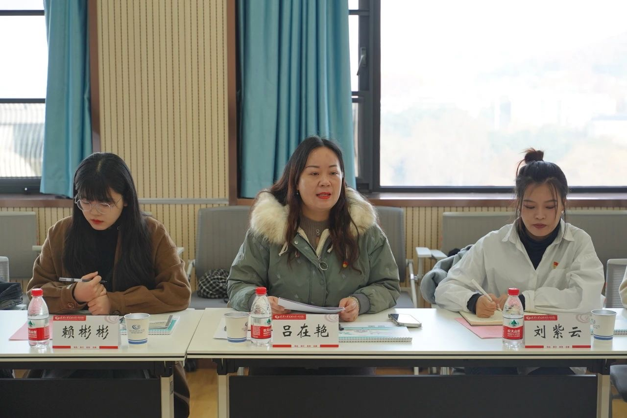 与会人员就党建、学风建设、就业引导、学生活动、主题班会形式、辅导员队伍建设机制等方面进行了深入交流。电气与自动化学院赵薇介绍了学风建设的具体措施;土木建筑工程学院余娟和计算机学院胡仲淹分享了开展就业工作的经验做法;经济与管理学院张可儒介绍了学院召开主题班会的形式内容和效果经验等;城市设计学院陈曦就辅导员在“三全育人”中的经验做法作了分享;外国语言文学学院林梓弦分享了学院依托外语学科特色开展党建工作的系列做法;遥感信息工程学院蒋艺润就学院开展的学生活动类别形式等作了详细介绍。