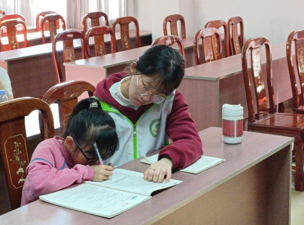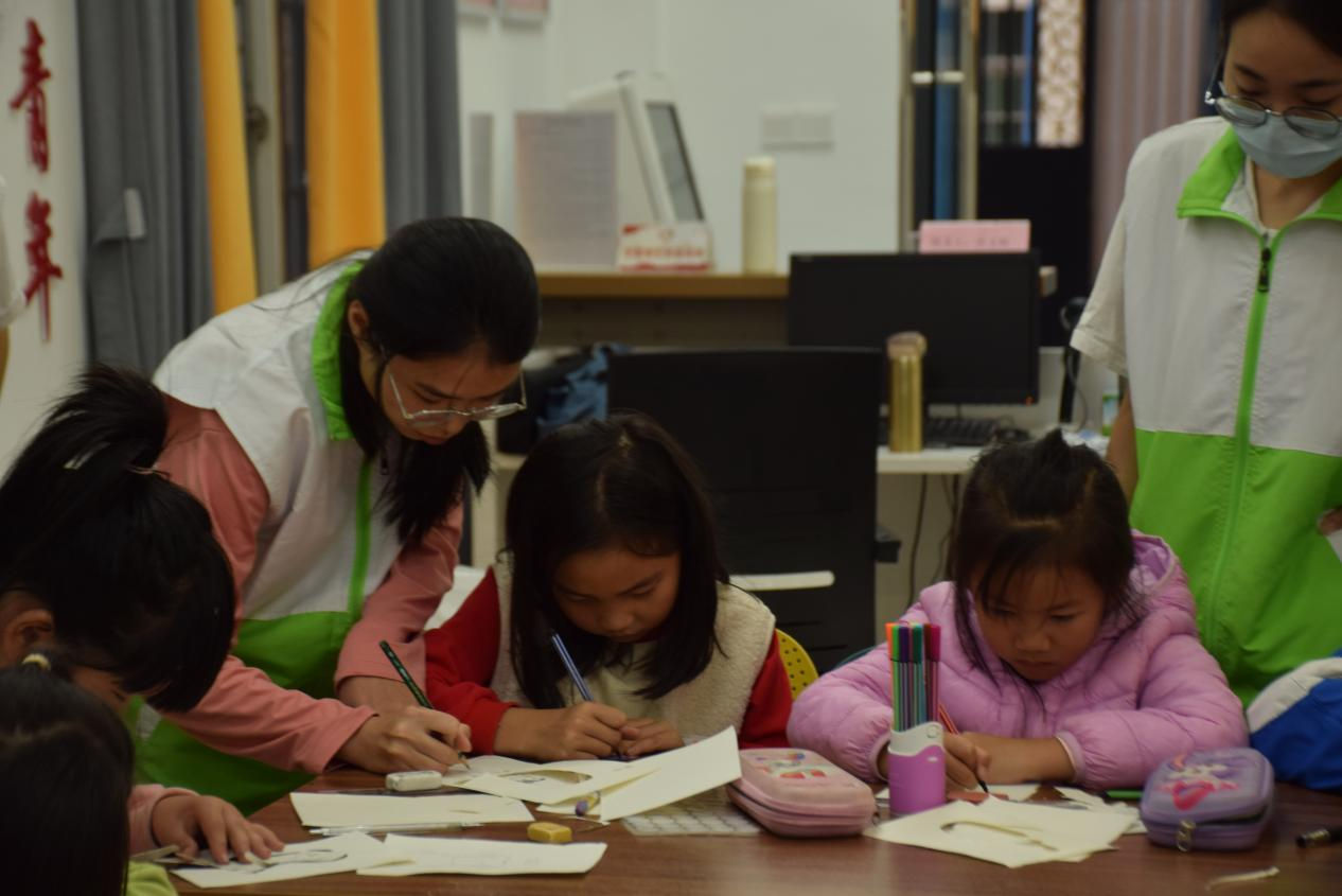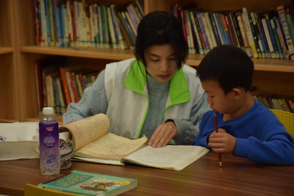 志愿者为小朋友进行课业辅导