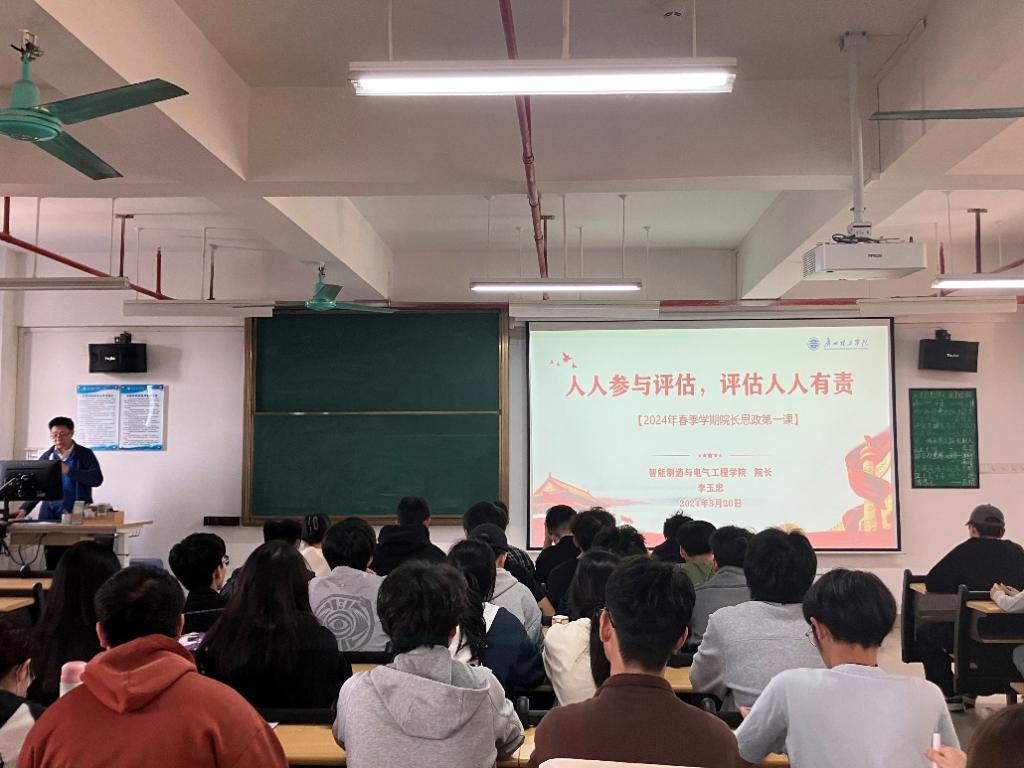 3月20日下午,执行院长李玉忠以《人人参与评估,评估人人有责》为主题,在白云校区13栋602教室讲授了2024年春季学期“思政第一课”。