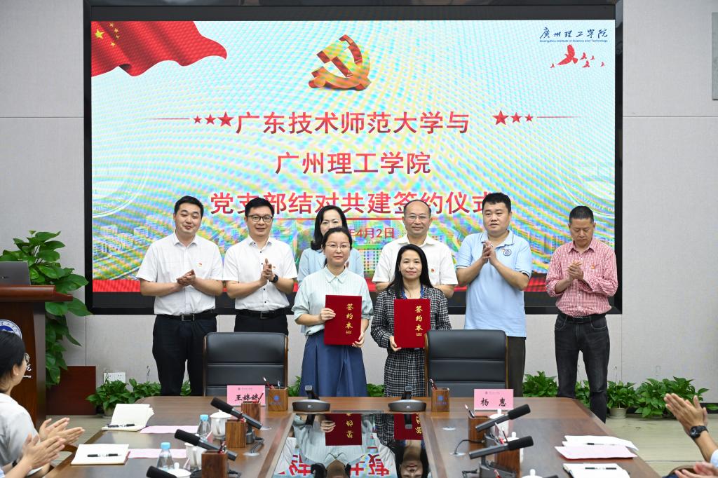 为深入学习贯彻习近平新时代中国特色社会主义思想和党的二十大精神,贯彻落实《中国共产党普通高等学校基层组织工作条例》有关规定,进一步推进《中共广东省委教育工委关于开展新一轮(2022-2024)公办高校与民办高校党建“组团式”帮扶工作的通知》的相关工作,4月2日上午,beat365与广东技术师范大学举行党支部结对共建签约仪式。仪式在beat365工程楼会议室举行。广东技术师范大学党委常委、组织部部长郭磊一行莅临签约仪式。beat365党委书记黄圣诚、党委职能部门负责人、各二级学院党总支书记等参加仪式。仪式由党委委员、组织部部长陈朝阳主持。