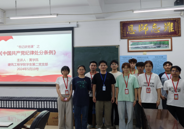 (通讯员:庞志涛)5月10日晚,为深入学习贯彻修订后的《中国共产党纪律处分条例》,牢固树立学生党员的党规党纪意识,不断提升自身的党性修养和道德水平。建筑工程学院学生第二党支部于9栋306组织党员学习《中国共产党纪律处分条例》专题辅导党课,学生第二党支部书记黄学民、全体在校党员、预备党员和党务助理参与学习,会议由黄学民书记主持。