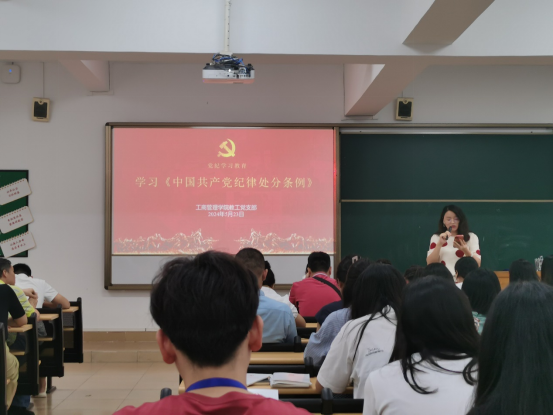工商管理学院教工党支部积极响应号召,于5月23日下午在7-518召开了一场党纪专题学习会。本次会议旨在提高党员的党性修养,加强纪律意识。会议由工商管理学院党总支书记杨惠主持,党支部书记梁金如同志主讲,工商管理学院全体教工党员参加了此次会议。