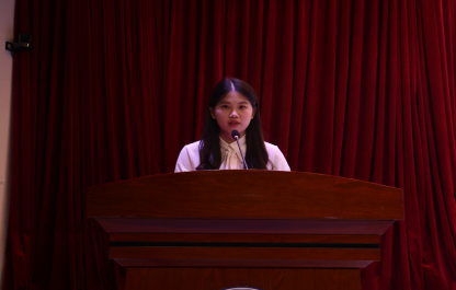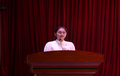 学生第二党支部新任副书记兼组织委员许丁元同志作就职演讲