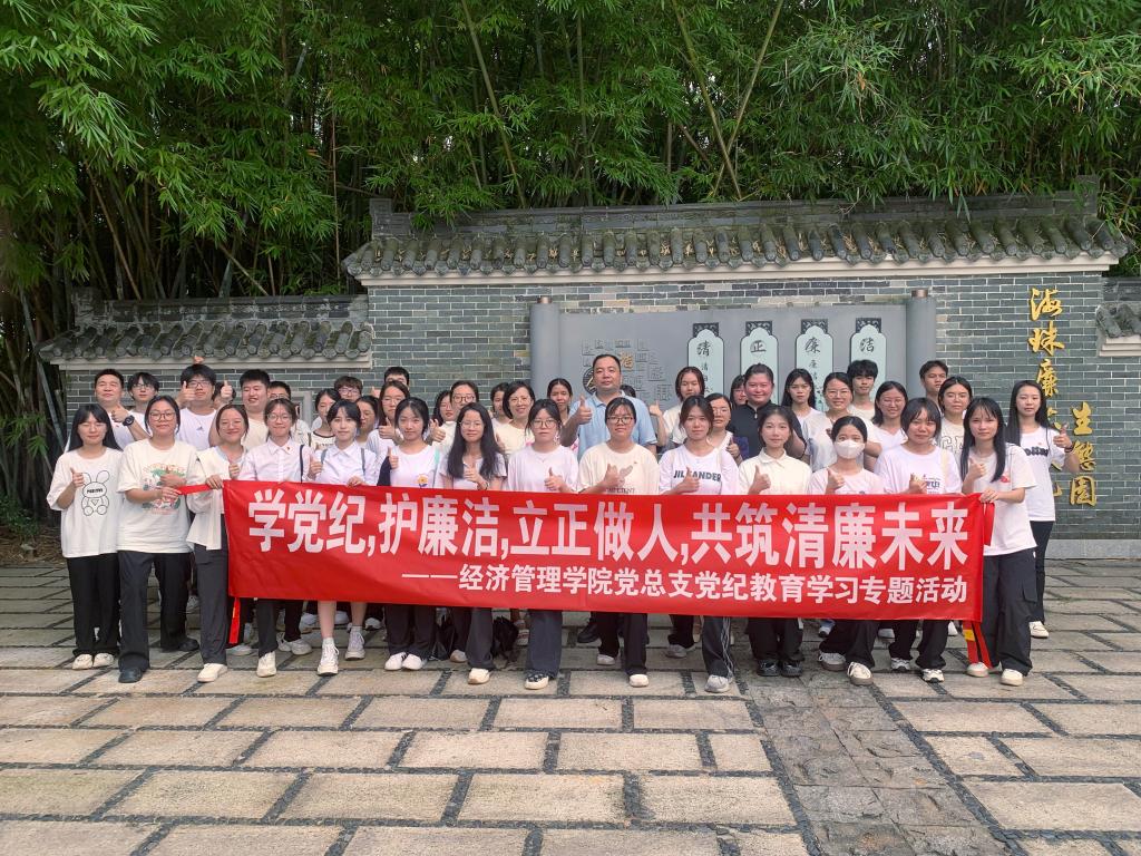 (通讯员:周颖)为深入开展党纪学习教育,营造风清气正的政治生态。2024年6月13日,经济管理学院党总支组织在校党员(含预备党员)共同赴广州市反腐倡廉教育基地——海珠廉洁文化生态园开展“学党纪,护廉洁,立正做人,共筑清廉未来”廉洁教育主题党纪活动。
