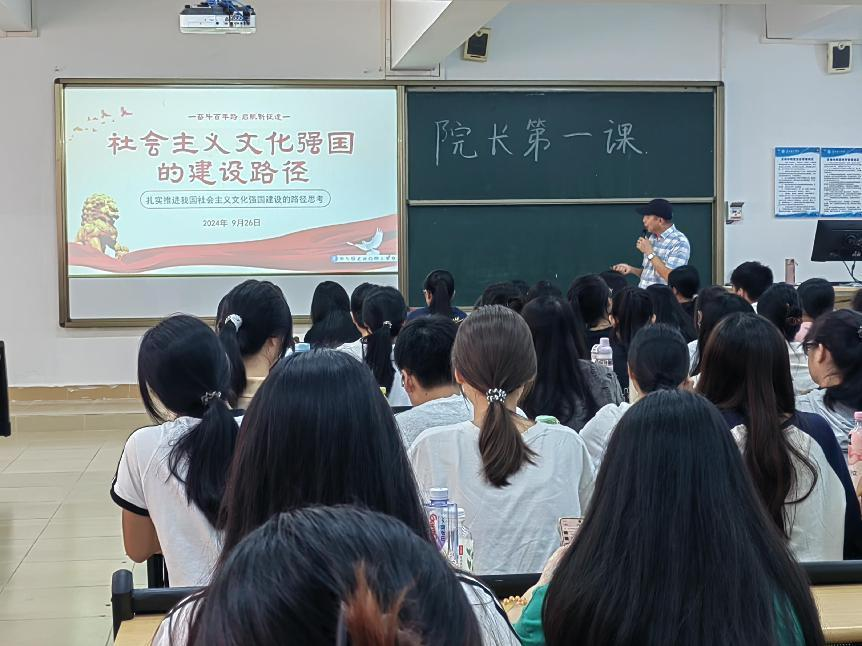 为深刻领会习近平总书记在党的二十届三中全会上阐述的重大课题,积极探索社会主义文化强国的建设路径,并加强对宣传思想文化阵地的管理和思想文化工作队伍的建设,人文与教育学院于2024年9月26日在7栋418召开了“院长第一课”。由人文与教育学院周卫忠院长授课,人文与教育学院23级全体入党积极分子参与学习。